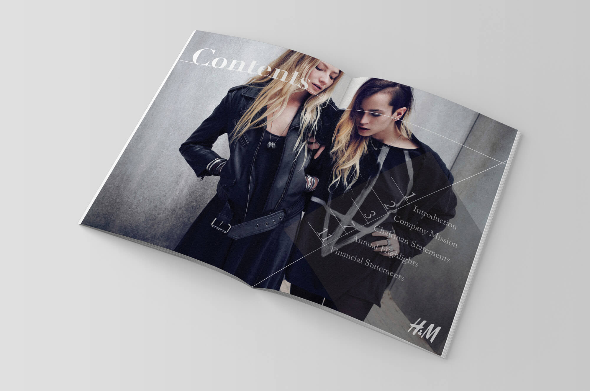 H&M is a Swedish clothing label well known for it’s tailored clean looks and affordable pricing. I have decided to design it’s 2012 annual report and an advertising poster. In terms of the contents layout, I tried come up with something that is clean and simple. I’ve opted to use negative space to control the contents and the eyes of the readers to emphasize on the hierarchy of the contents presented. Besides that, I have also implemented some thin, subtle lines to separate different contents to make the layout clean and organized.
